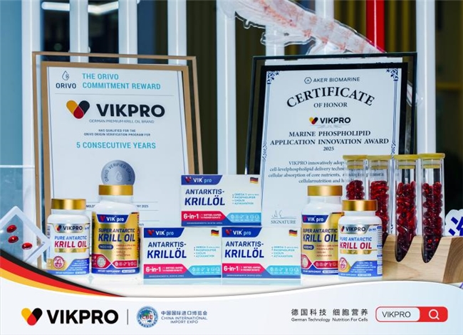 2025年11月10日,第八届中国国际进口博览会落下帷幕,五度参展进博会的德国高端医学营养品牌VIKPRO,再次凭借卓越的产品力与市场表现,展示了品牌在精准营养及细胞级医学科技领域的强劲实力。进博现场VIKPRO新品全球首发、权威奖项不断、观众互动不停,以丰硕的成果向业界交出了一份亮眼的成绩单。