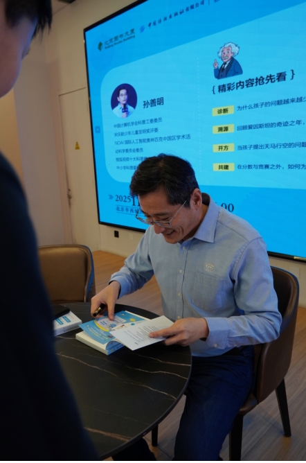 互动环节结束后,现场有序开展了图书签售与集体合影。作者孙善明耐心为每位读者在书籍上签名,不时与孩子、家长交流科学探索与好奇心培养的心得,现场氛围温馨热烈。随着签售的结束,本次《给少年科学家讲相对论》新书分享会也圆满落下帷幕。
