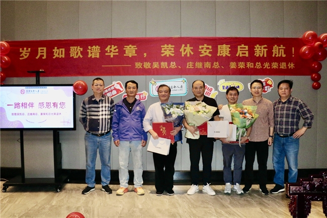 此次欢送会通过三段精心制作的纪念短片徐徐展开——泛黄的老照片与近年工作影像交替闪现,记录着三位同志从青丝到华发的奋斗足迹:会议室里的激烈讨论、业务一线的奔波身影、获奖时刻的灿烂笑容……一幕幕熟悉的画面引发现场阵阵共鸣。