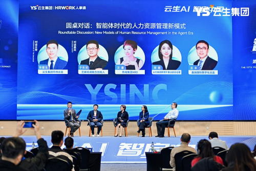 最后,由云生集团职得干事业部总经理邓丽、秀域集团HRD文瀑、芝麻背调联合创始人于东深、嘉驰国际数字化总监王丰共同参与的圆桌对话环节,围绕“智能体时代的人力管理新模式”展开了深度探讨。云生集团市场总监张建生担任圆桌对话主持。