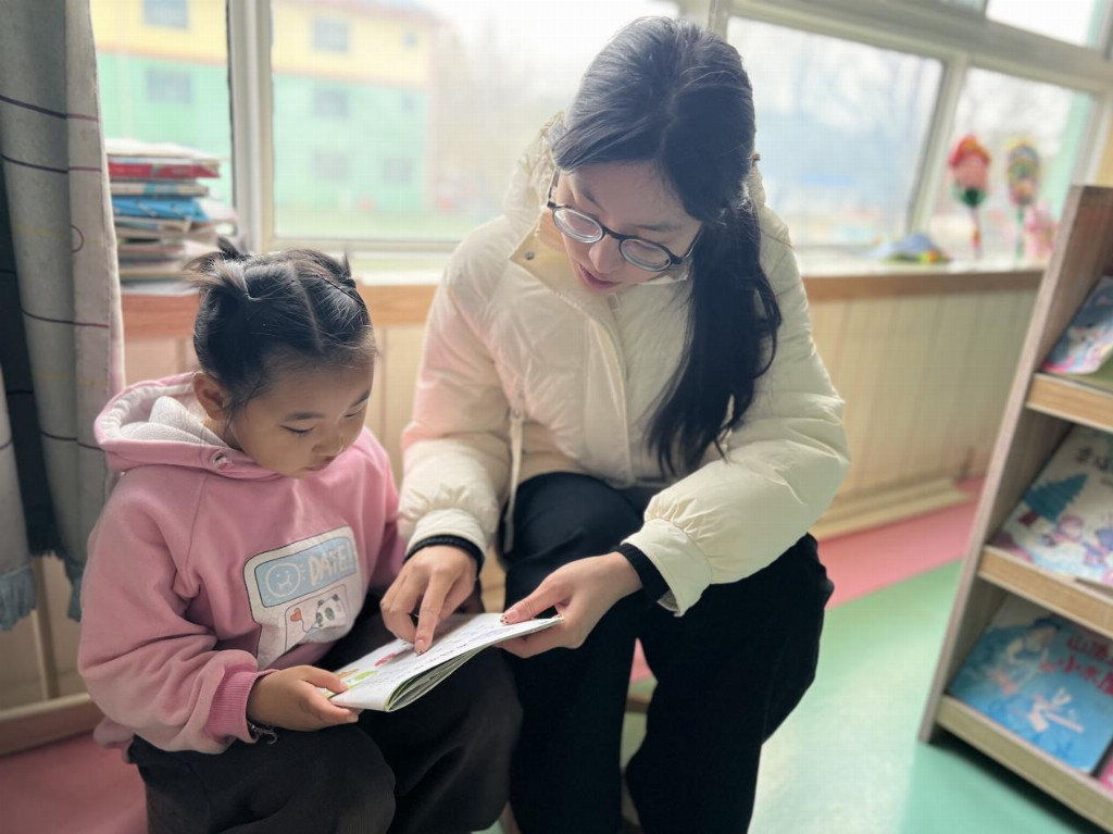 图为实践团成员为小朋友讲解绘本