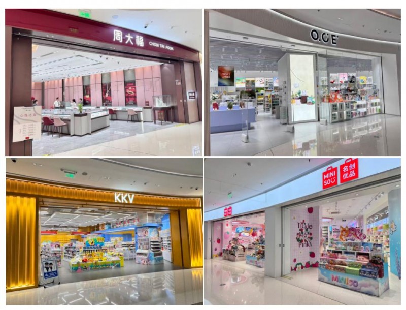 在零售领域,商场引入了周大福、老庙黄金、六福珠宝等珠宝行业领军品牌,以及O.C.E、名创优品旗舰店等零售品牌,涵盖了多个品类,为消费者提供了丰富的选择;此外还特别引入了KKV、TOPTOY、The Green Party、杂物社、二哈勿扰等深受年轻人喜爱的潮玩业态。这些潮玩品牌的加入,不仅丰富了商场的商品种类,更将潮流文化与购物体验紧密结合,为消费者打造出一个充满乐趣与惊喜的购物环境。