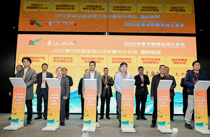 园甘长成时,三寸如黄金。11月11日,2025年奉节脐橙全球订货会重庆分会场活动在重庆市人民大礼堂“一带一路”倡议国际品牌馆隆重举行,现场签约2.9万单,采购商阵容、签约规模取得新突破。同时本次活动与北京、上海、广州、成都、河北、青岛等全国10大城市同步联动,规模盛大,充分展现了奉节脐橙强大的品牌影响力与市场号召力,以及重庆农业深化开放合作、拥抱全球市场的坚定信心。