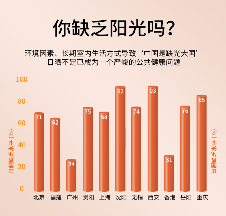 你知道有多少个城市的人缺少光照吗?这些病竟是因为,没晒够!