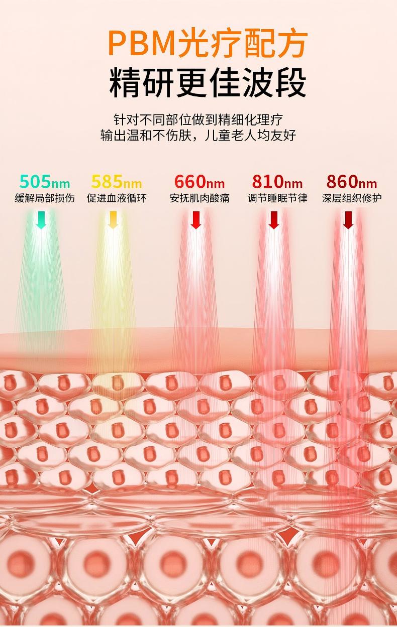 810nm 近红外光:温和调节睡眠,睡得香,起得爽。