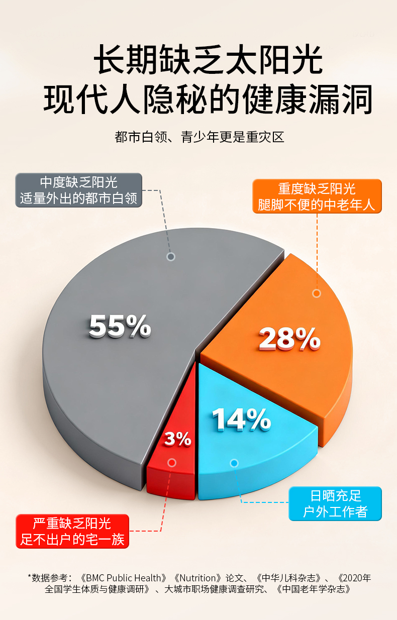 现代生活方式将我们禁锢在室内,日均接受有效日照的时间少得可怜。