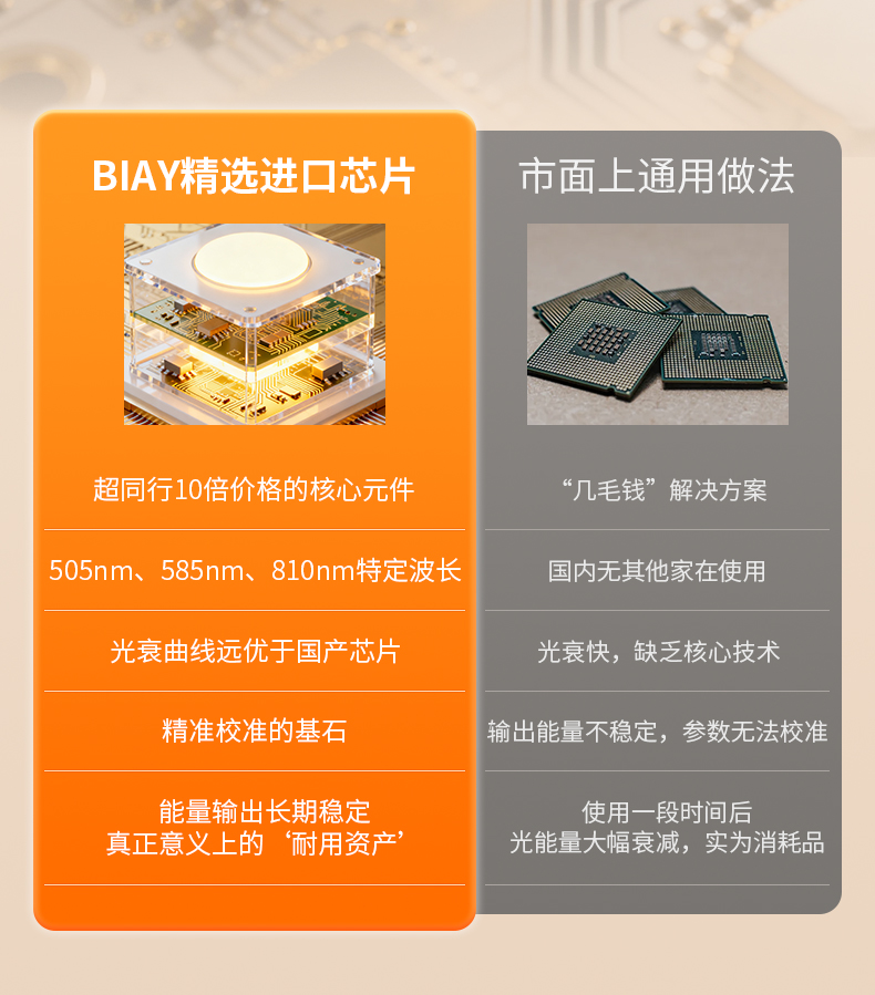 唯一性与稀缺性:其中505nm、585nm、810nm芯片,全部选自海外顶级供应商。