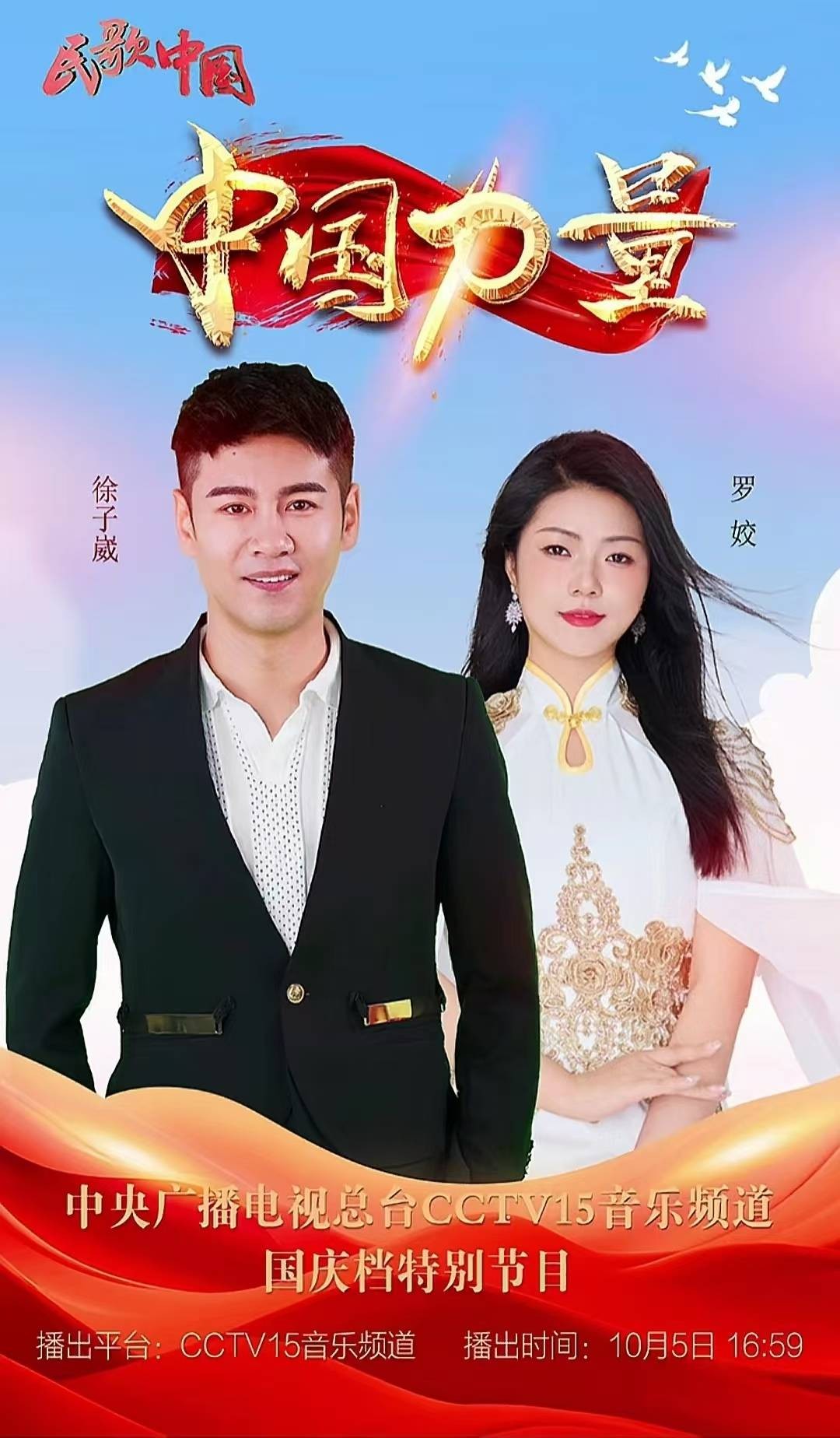 2024年10月1日内蒙古鄂尔多斯,徐子崴携罗姣在三峡集团库布齐中北部新能源基地参与录制央视节目《熠熠的光》,二人合唱《中国力量》,后由央视音乐频道播出。这是罗姣走出抖音平台首次登上央视舞台,实现了网红歌手的飞跃。