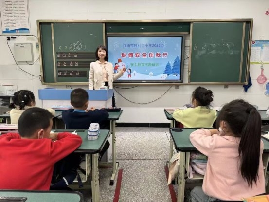 2025年11月11日下午,江油市胜利街小学1.3班班主任文小梅老师以“秋假安全伴我同行”为主题,为全班学生开展了一场生动实用的安全教育课。