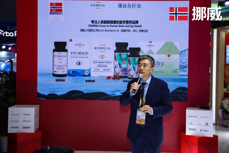 11月6日下午,在挪威营养馆举办的「企业宣讲会」上,ROMEGA中国总经理慈宏亮博士发表了题为《挪威海洋生物科技创新产品助力人类脑眼健康》的演讲,系统阐述了鱼籽油在脑眼营养、母婴健康及皮肤领域的研究成果与应用前景。