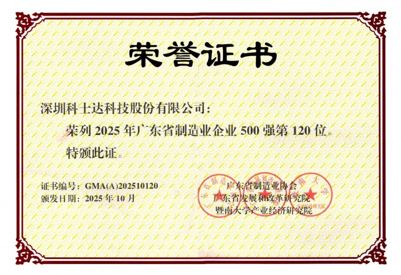 近日,由广东省制造业协会、广东省发展和改革研究院等联合主办的2025年广东省制造业500强企业峰会圆满落幕。本次峰会以“大国‘机’遇,数智未来”为主题,深入探讨制造业转型升级路径。在发布的2025年广东省制造业500强榜单中,科士达凭借卓越的综合实力与领先的智能制造水平,成功位列第120位。这一成绩不仅是对科士达三十余年深耕制造业的权威认可,也充分体现了其在数字化转型过程中所构建的核心竞争力。