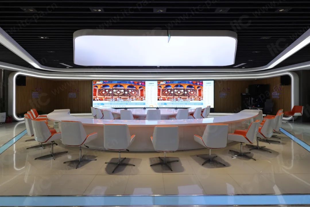 作为政府权威信息的发布窗口,指挥调度平台汇聚政策、政务、经贸、民情、地方资讯等多元内容。itc根据会商决策室现场环境,为其配置了 专业全频音箱 ,不仅保证现场美观大方,也满足会议扩声达到国家厅堂《GBT 28049-2011》一级声学指标, 实现语言清晰、无失真、声场均匀饱满的扩声效果 ;同时部署的 itc数字会议系统 采用手拉手安装方式,兼具灵活安装与易维护特性,在不影响整体布局下,实现高保真超远距离拾音,并且无任何啸叫,面对远程指挥调度、现场会商决策等会讨需求,也能确保发言人流畅沟通。