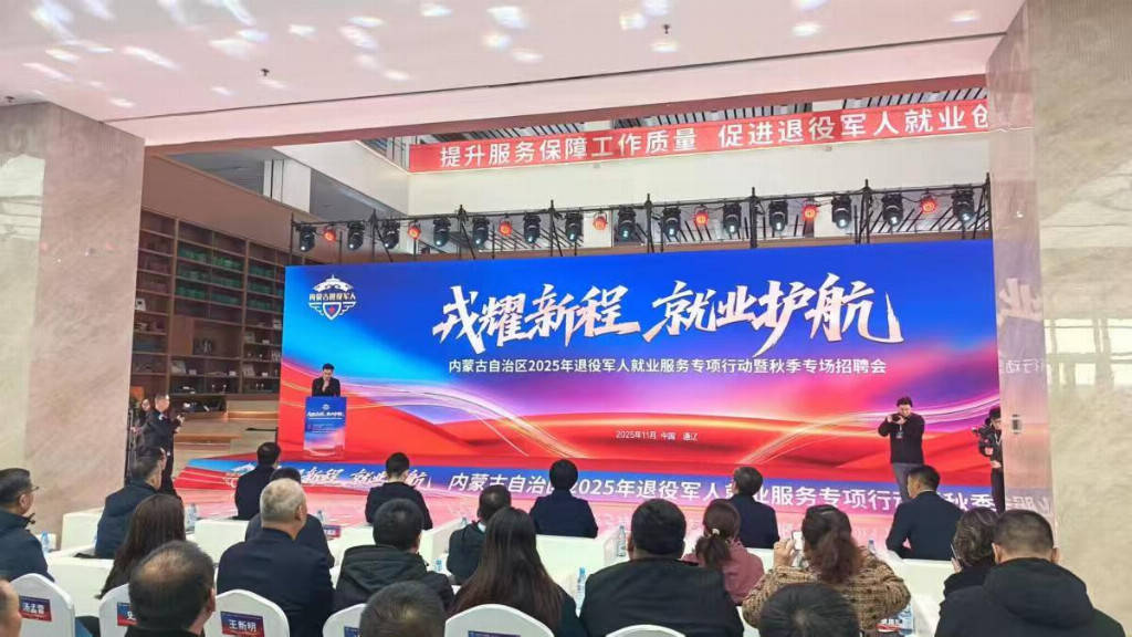 11月7日上午,由内蒙古自治区退役军人事务厅和通辽市人民政府联合举办的2025年退役军人就业服务专项行动暨秋季专场招聘会在通辽职业学院校园隆重启幕。通辽市人民政府党组成员、副市长陈奕名致欢迎词,自治区退役军人事务厅党组成员、副厅长邓伟出席并讲话。