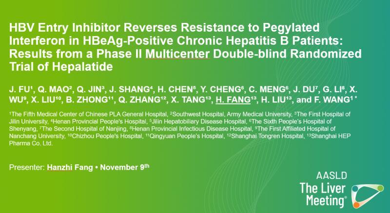 针对占患者主体、对干扰素应答普遍不佳的非优势群体,王福生院士领衔的创新药物研究成为焦点。上海贺普药业通过大会报告发布乙肝病毒进入抑制剂贺普拉肽的II期随机双盲临床试验结果:该药凭借独特病毒进入阻断机制,成功逆转"大三阳"患者对干扰素应答障碍,显著提升病毒学应答率;部分患者实现cccDNA清除,达到国际公认的灭菌性治愈标准,为根治乙肝提供突破性可能。