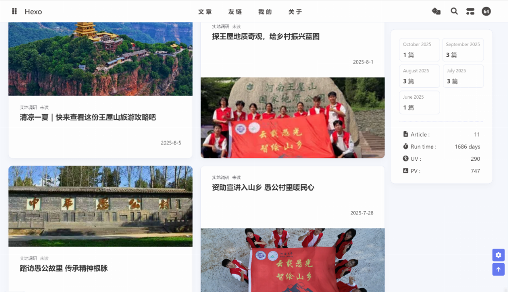 网站采用 Hexo 框架构建静态页面,兼顾开发效率与访问稳定性;托管层面结合 GitHub Pages 与 Cloudflare Pages 双平台,前者实现基础代码托管,后者优化访问速度与加载稳定性,保障多地区用户流畅浏览。