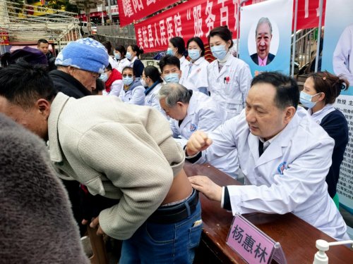 在美姑美美广场义诊现场人头攒动,医疗团队一落座便被前来求医问药的群众层层围住,专家们耐心细致地为每一位居民诊疗,在长达数小时的义诊中,医疗团队为50多人把脉开方,为近200人进行了针灸治疗。