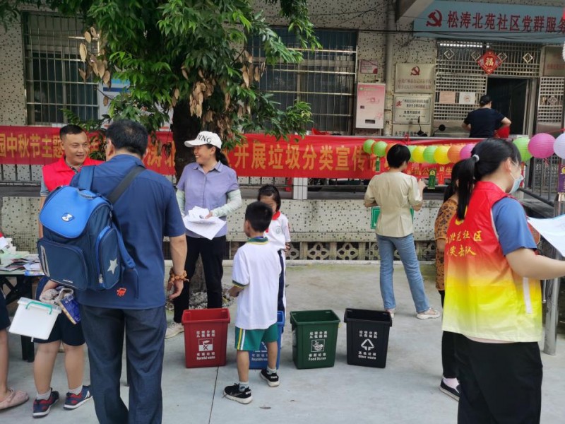 为深化垃圾分类理念,引导居民从源头践行环保生活,近日,永平街道松涛北苑社区在小区健身广场开展以"垃圾分类齐参与,绿色家园共守护"为主题的宣传活动。通过知识普及与互动实践相结合的形式,将垃圾分类知识送到居民"家门口",激发全民参与环保的热情。