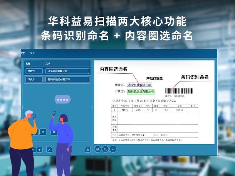 这样的困境在车间生产、质检审核、财务对账等环节反复上演:人工录入慢、单据格式杂难适配、数据录完还要手动导系统,层层阻滞着企业数字化落地的节奏。而华科益易扫描软件的出现,以 “条码识别命名 + 内容圈选命名” 两大核心功能,用轻量化工具精准破解行业沉疴,成为制造业降本增效的实用型利器。