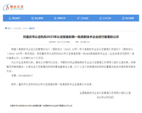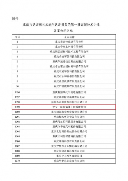 近日,全国高新技术企业认定管理工作领导小组办公室正式发布《对重庆市认定机构2025年认定报备的第一批高新技术企业进行备案的公示》,中交三航局第九工程有限公司成功入选。目前公示期已结束,认定结果正式生效,标志着这家深耕交通基础设施建设的企业正式迈入国家高新技术企业行列。