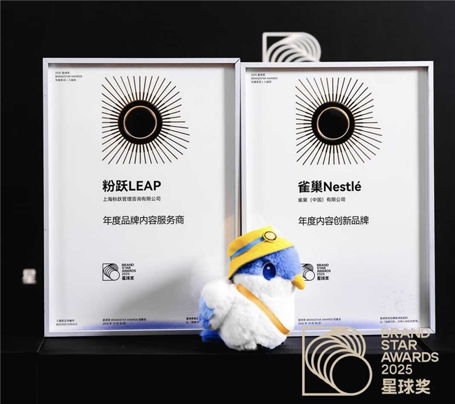 2025品牌星球创新大会暨星球奖颁奖盛典于10月30日在上海雷士德工学院旧址隆重举行。经过多轮严谨评审,粉跃LEAP凭借其在整合营销与品牌内容策略上的卓越表现,从众多专业服务机构中脱颖而出,荣膺“年度品牌内容服务商”大奖。与此同时,粉跃的战略合作伙伴雀巢(中国)亦凭借卓越的内容创新能力,摘得“年度内容创新品牌”荣誉。
