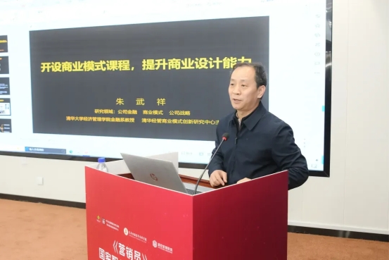 在主题分享环节,清华大学经济管理学院教授、清华经管商业模式创新研究中心主任朱武祥以《开设商业模式课程,提升商业设计能力》为题,结合丰富案例与前沿理论,为《营销员》国家职业标准的制定提供了核心支撑。