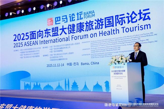 2025年11月12-14日,2025面向东盟大健康旅游国际论坛(巴马论坛),于世界长寿之乡——广西巴马成功举行。本届论坛,由中国文化和旅游部国际交流与合作局、中国国家中医药管理局国际合作司、中国广西壮族自治区文化和旅游厅、中国广西壮族自治区中医药管理局联合主办,来自中国和东盟国家文化旅游、卫生传统医药等主管部门领导,国际组织代表,行业领军企业代表、知名专家学者等超130位嘉宾齐聚一堂,共话产业发展。
