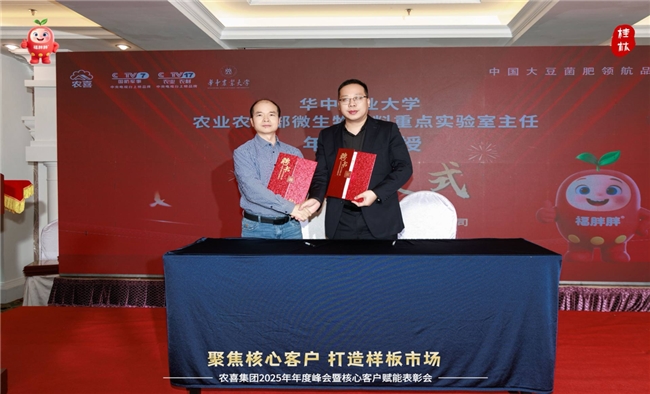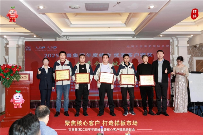 农喜集团创始人菅旭鹏发表重要讲话,全面总结2025年工作成果,并发布2026年运营战略。未来,农喜将依托中国农业大学、中国农科院、华中农业大学的科研资源,升级产品配方、加速科研转化,持续聚焦市场与核心客户、打造样板市场,向着“2030年成为中国大豆菌肥领航品牌”的目标稳步迈进。