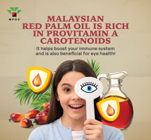 Masni博士指出,红棕榈油(Red Palm Oil, RPO)是从油棕果实中果皮提取的粗棕榈油(CPO)经温和精炼工艺制成的油脂,最大程度保留了类胡萝卜素、生育酚和生育三烯酚(维生素E)等天然营养成分。其中,类胡萝卜素不仅是维生素A的前体,也是赋予红棕榈油独特红橙色的天然色素。研究表明,红棕榈油中的类胡萝卜素含量最高可保留粗棕榈油的80%。