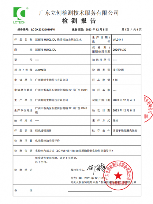 这款洗发水含两项核心专利(专利号:ZL201610432765.1/ZL201310366274.8),通过有机认证,成分溯源清晰且安全。另有专业机构出具的控油、去屑专项检测报告,搭配备案与流通报告,合规性与功效性均有权威加持。