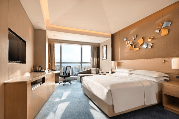 酒店拥有386间雅致客房与套房,以简约格调为笔触,将现代设计语言与成都温润如玉的城市底蕴相融合,于繁华城心开辟出一方“闹中取静,居而逸然”的理想栖所。客房内,全景落地窗将自然光景引入室内,配备LCD电视、高效工作区以及英国Crabtree & Evelyn®瑰珀翠品牌洗浴备品,于每一处细节尽显品质关怀。部分客房更坐拥迷人城景,让宾客的旅途因视野的延伸而愈加精彩。