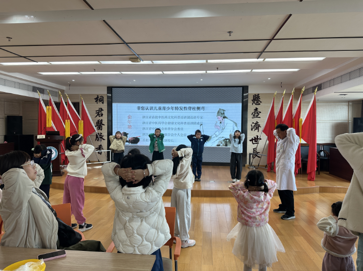 关注儿童健康成长,杭州市名中医俞年塘则带来了一堂实用的脊柱健康课。他从日常生活习惯入手,讲解了脊柱侧弯的成因与预防,并现场带领家庭学习“中医护脊健康操”。孩子们学得认真,家长也纷纷记录,表示“这样的健康科普非常实用,孩子喜欢,家长受益”。