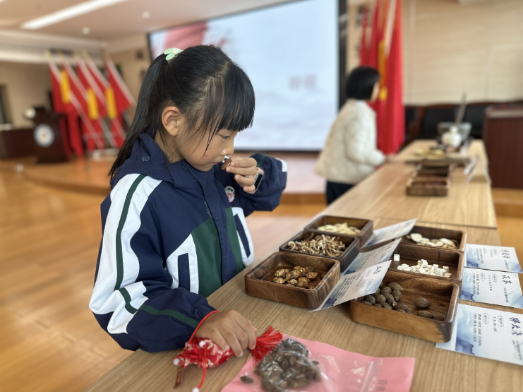 最受欢迎的“神奇百草园”环节,则将活动推向了高潮。孩子们通过看、摸、闻,亲手感知茯苓、山楂等常见中药材。有奖竞猜环节妙趣横生,亲子合作DIY草本泡脚包温馨有爱,让孩子们把中医药的“温暖”与“健康”亲手打包带回家。