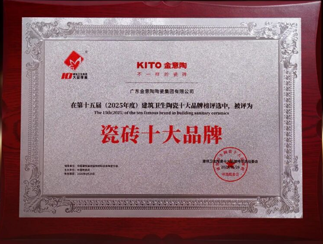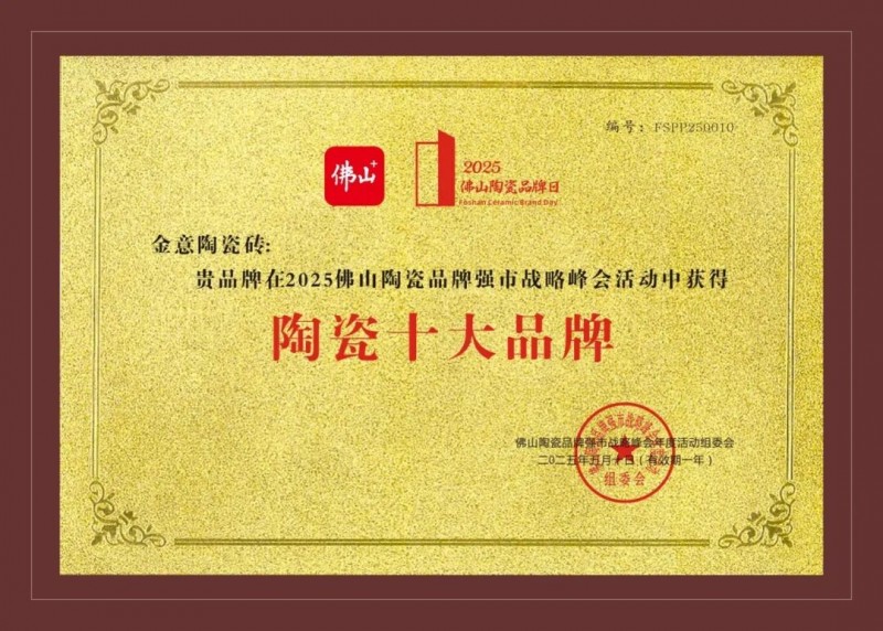 5月10日,由佛山市委网络安全和信息化委员会办公室、佛山市市场监督管理局指导、佛山陶瓷品牌强市战略峰会年度活动组委会主办的“品牌破圈 聚力突围——2025佛山陶瓷品牌强市战略峰会”在佛山禅城举行。会上,2025年度佛山陶瓷行业品牌推介榜单正式揭晓。金意陶凭借卓越的创新能力、对品质服务的坚守和强大的品牌影响力,揽获“佛山陶瓷头部品牌、陶瓷十大品牌”等重磅大奖;5月26日下午,由中国陶瓷网主办的“超级品牌,中国主场”首届泛家居行业品牌节,在佛山举行。2025建筑卫生陶瓷十大品牌榜单正式揭晓,金意陶凭借硬核的品牌实力、优异的产品品质和良好的市场口碑一举揽获“瓷砖十大品牌”重磅殊荣!金意陶此次荣获“瓷砖十大品牌”,是业内权威以及消费者对金意陶的高度认可,更是金意陶品牌实力与影响力的权威认证。