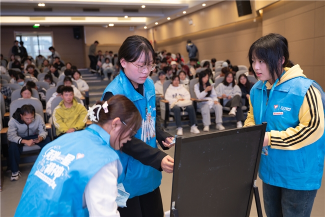 活动尾声,一段精心制作的短视频让现场陷入沉思:航天工程师、敦煌数字化团队成员、乡村教师等当代青年在“小众关键领域”坚守的感言,与两弹元勋的照片墙交相辉映,跨越时空的精神共鸣催人奋进。宣讲团成员魏萍在总结中提到,“隐姓埋名”不是放弃自我,而是找到比“名字”更长久的坐标,当个人的“擅长”遇上国家的“需要”,就是最稳的职业锚点。她还介绍了西部计划等基层项目,鼓励新生们无论是深耕专业还是走向一线,都能在时代需求中实现自我价值。