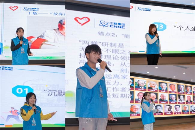活动开篇以一组强烈反差的画面直击人心:一边是“大厂高薪”“稳定编制”等当代青年职业选择热词,一边是60年代西北戈壁上科研人员隐姓埋名的老照片与“干惊天动地事,做隐姓埋名人”的铿锵标语。宣讲团成员王舒萱一句“相隔60年的选择,差在哪里?”瞬间点燃现场思考氛围。