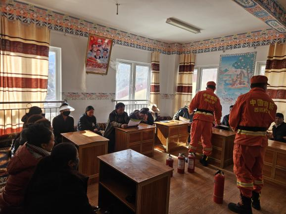 活动中,中队指战员首先围绕“森林防火期安全防护”开展理论授课。结合昌都市森林资源分布特点与往年火灾案例,指战员用通俗易懂的语言,详细讲解了森林防火期的划定标准、野外火源管控要求,以及居民日常生活中如何防范阳台堆积物起火、电器线路老化隐患等内容,重点强调“见烟就查、见火就灭”的森林防火原则,引导居民树立“防火无小事,责任在人人”的安全理念。