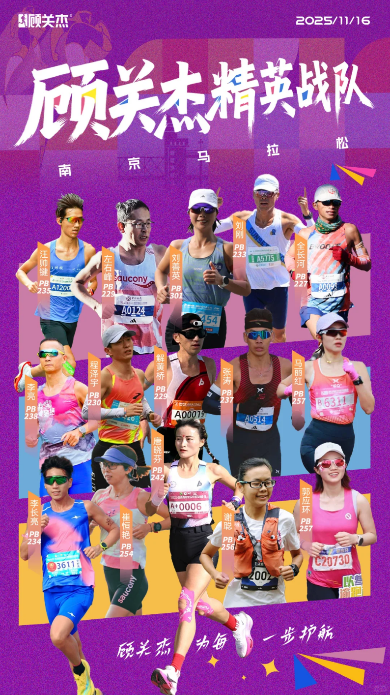 南京马拉松作为国内知名的金牌赛事,汇聚了众多顶尖跑团与精英选手,能在这样的高规格舞台上跻身前五,这份成绩足以证明顾关杰精英队的硬核实力,更彰显了顾关杰品牌在运动健康领域的专业赋能。
