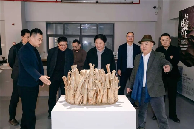 随后,林茂院长与央美团队参观了在瓷源境美术馆由雕塑系青年教师黄山策划的“与泥土对话-----国际陶瓷艺术邀请展”,本次展览通过“埴中意”“塑间痕”“壁上观”“域中游”四个板块60余件国内外现当代陶艺作品,以“泥土”为核心概念将陶艺重新置入当代艺术与哲学的思考框架之中。展览通过呈现出从材料自觉到空间语义的演变脉络,意在梳理当代陶艺的精神轨迹与学术逻辑。