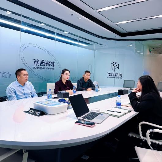 碧绽美创始人何忆、碧绽美联合创始人何亚明、四川昇嘉科技有限公司研发总监刘剑钊近日赴杉海创新深圳总部,与研发团队就<超分子>研究项目展开交流,并共同见证联合研发实验室的揭牌。