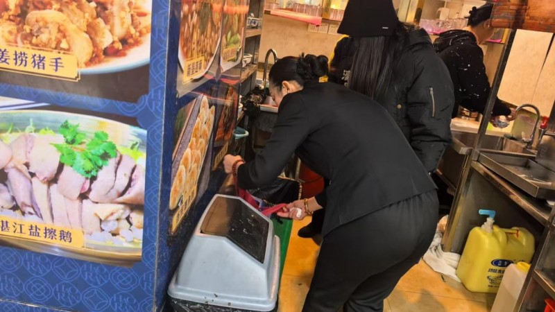 近期,昌华街垃圾分类指导中心工作人员对新开张和待续签收运协议的餐饮单位上门走访,就单位存在的分类宣传栏欠缺、标识错误、分类容器配置不规范、收运协议和油脂协议未签订、台账资料未更新等问题对现场负责人进行答疑解惑,明确告知其相关责任和义务,让商家主体真正意识到垃圾不规范处理的后果和处罚措施。协议签订工作本着商户自愿原则,根据自身实际情况,与广州环投环境集团签订收运协议书。工作人员检查期间还发放了垃圾分类操作指南,内容涵盖垃圾分类的基本概念、不同类型垃圾的区分方法以及重要性,以简洁明了的文字和直观的图片,让工作人员快速吸收知识,让大家深刻意识到垃圾分类与每个人息息相关。