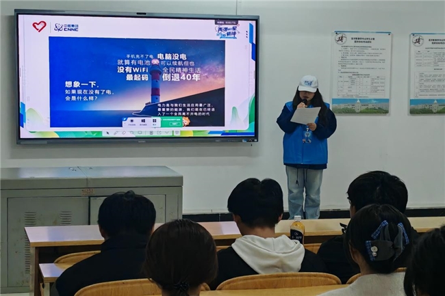 讲座开篇,主讲团队从人类文明演进与能源利用的宏大叙事切入,深刻阐释了能源作为现代社会运转基石的核心地位,引发学子对“能源与生活”的深度思考。团队成员分工明确、协作默契,层层推进讲解脉络:有的系统梳理能源的发展历程与分类体系,凸显电力在现代能源结构中的核心作用;有的以“教室电灯的电从何而来”这一贴近生活的问题破题,自然引出火电、水电、核电三大电力支柱,并通过数据对比,重点剖析核电在稳定性、高效性与低碳性上的独特优势;还有的聚焦化石能源面临的储量枯竭与环境污染双重挑战,强调能源转型的紧迫性与必然性,点明核能作为未来清洁能源重要选项的战略意义。
