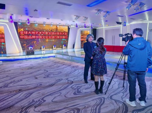 2025年11月23日在广州举行全球独创T台秀“全球大地艺术节全球AI音乐大会.品牌全球联合国行”专场新闻发布会,现场直播观众累计上万人次