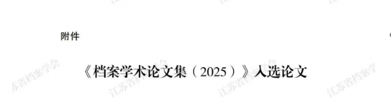 该论文成功入选江苏省档案学会编纂的《档案学术论文集(2025)》,并获评优秀论文。