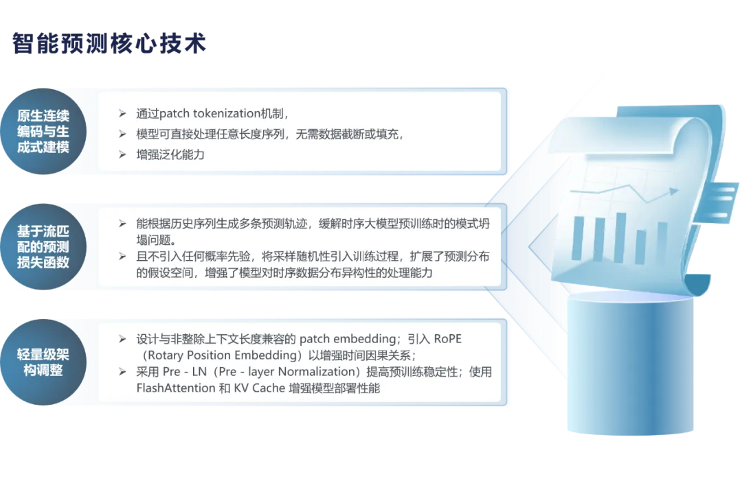 演讲中,庞海天博士还分享了江行智能基于流匹配和Transformer技术的时序预测模型,有效克服传统统计模型泛化能力不足、深度学习模型在数据稀缺时性能下降的局限性。