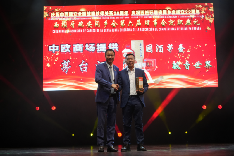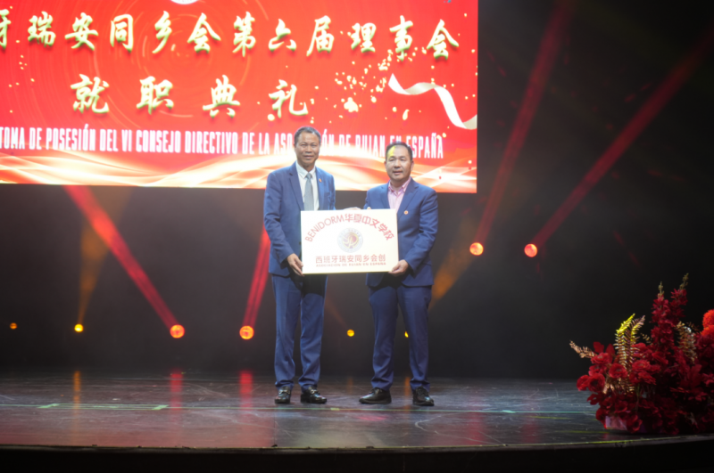 南部分会正式成立,董国强先生接过授牌,标志着瑞安侨团力量在西班牙进一步壮大。