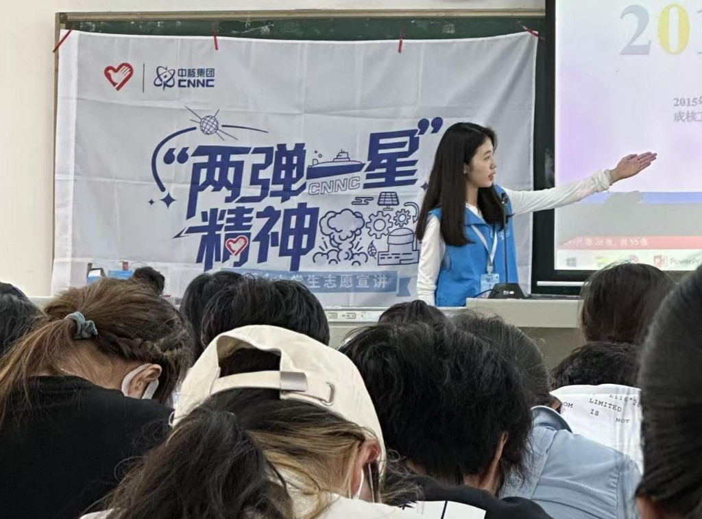 深入社区开展宣讲时,“两弹薪传,津师铸魂”宣讲团以核工业与百姓生活的联结为锚点,用浸润生活温度的视角消弭精神与日常的距离。团队成员避开专业术语,从居民熟悉的场景切入。聊医疗时,提及2019年我国首个医用钴靶件出堆打破进口依赖,让核技术成为守护健康的身边力量。谈能源时,拆解核电助力双碳目标的日常意义,点明家中灯火与核工业的隐性关联。讲述两弹一星精神时,更以烟火气的细节替代宏大叙事——科研家属深夜互助照看孩童、村民踏着晨露送新鲜蔬果到基地的往事,与老居民邻里相帮、支援建设的记忆共振,让无私奉献化作可触摸的生活片段,让精神悄然融入社区烟火。