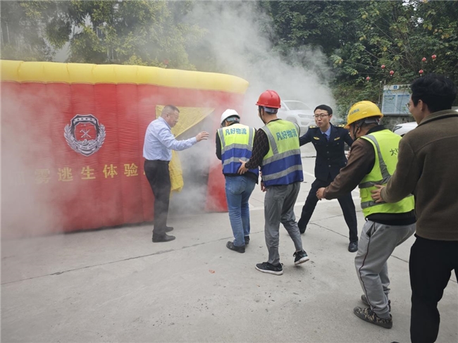 通过教官指导,厂长任总指挥,安全总监副总指挥,模拟演习帐篷逃生,参加演练的员工,学习使用湿毛巾、弯腰顺利通过烟雾区。