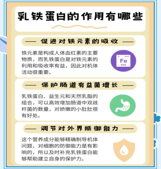1.抑菌抗病毒:构筑第一道防线。乳铁蛋白通过螯合铁离子剥夺细菌(如大肠杆菌)、病毒(如流感病毒)生长必需营养,直接抑制病原体繁殖,可降低呼吸道感染、肠胃炎症风险——对儿童、青少年的校园生活,成人的职场奔波,中老年人的日常防护均至关重要。