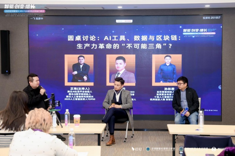 围绕“AI工具、数据与区块链:生产力革命的‘不可能三角’?”“组织进化论:数智化转型下的‘人效革命’”及“智联无界:跨境数智化如何重塑全球产业协作新生态?”展开。嘉宾共识:三项技术互补构建可信数字生态;转型是“人机协同”,需重塑岗位与能力;AI已成全球产业“连接器”,推动资源高效配置。