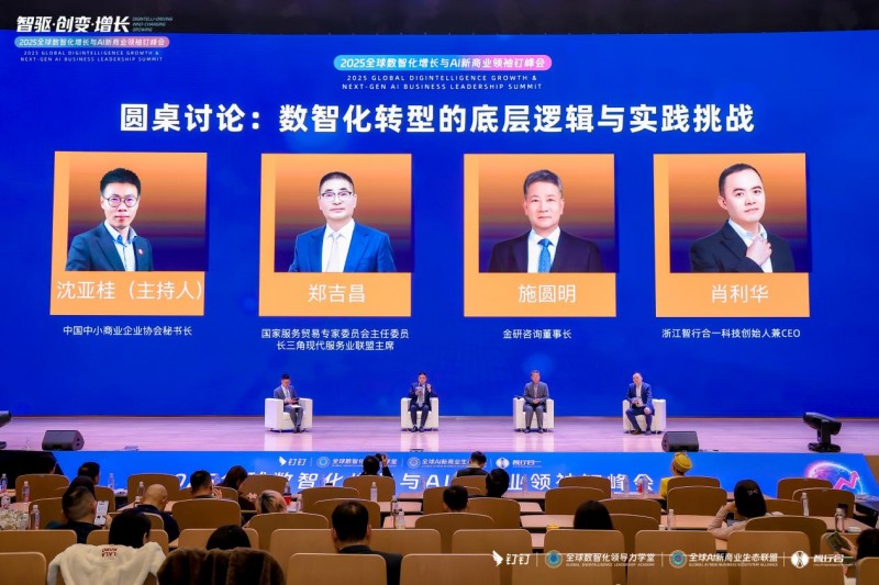 2025年11月21-22日,在杭州市余杭区人民政府的指导下,由全球数智化领导力峰会委员会发起,钉钉(中国)信息技术有限公司、全球数智化领导力学堂、全球AI新商业生态联盟、浙江智行合一科技有限公司主办,中国服务贸易协会、长三角现代服务业联盟、DTOP环球嘉年华中国总公司、元兔数智(杭州)网络科技有限公司等联合主办的“2025全球数智化增长与AI新商业领袖钉峰会”于阿里巴巴杭州总部成功召开。